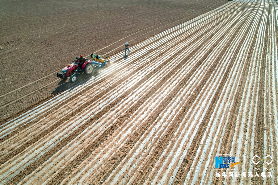 机械覆膜作业。新华网发 (陈思宏 摄)