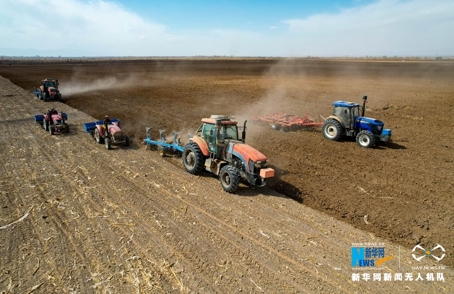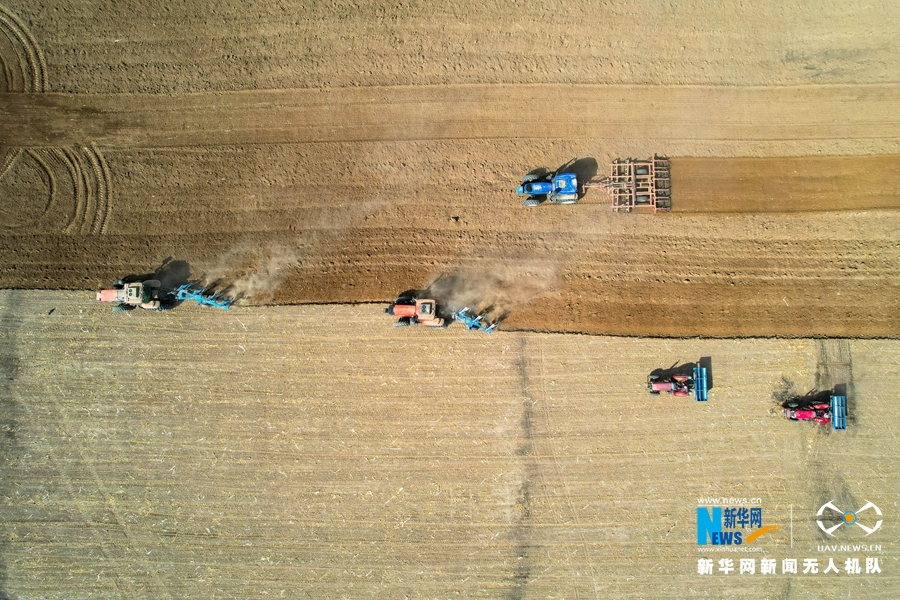 各类农机作业鸟瞰图。新华网发 (陈思宏 摄)