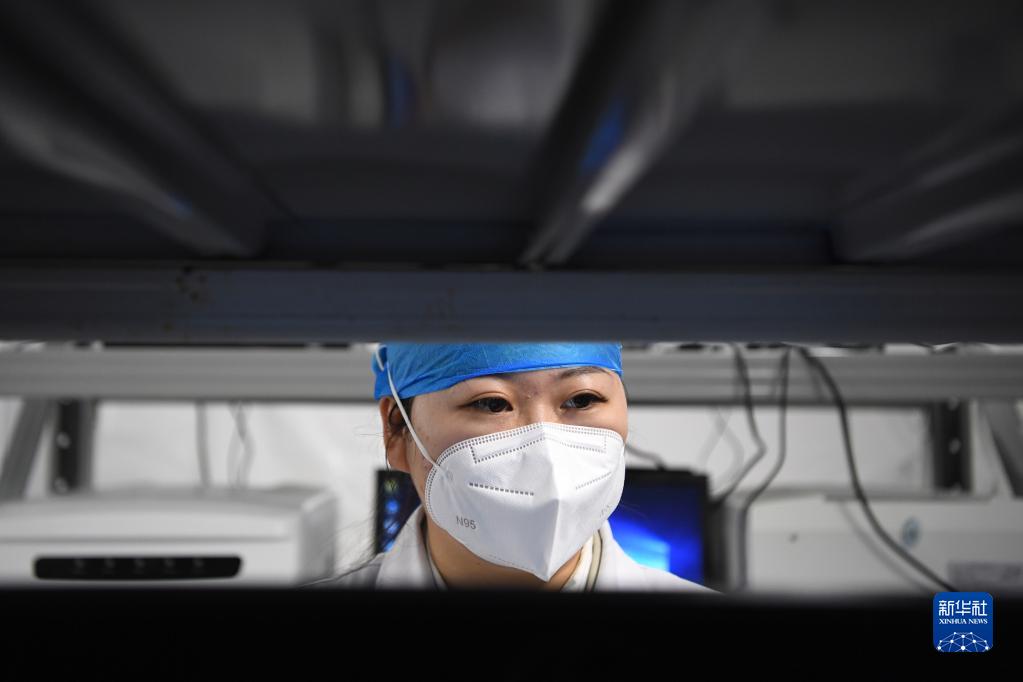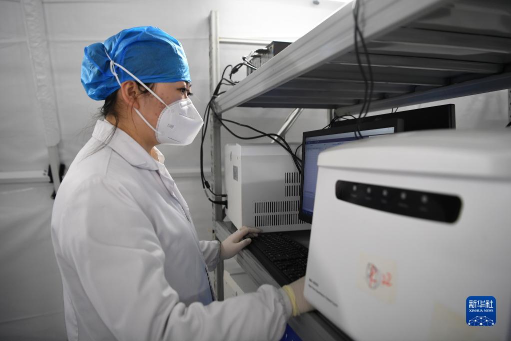 佟锦媚在“猎鹰号”硬气膜实验室扩增分析区工作(10月26日摄)。新华社记者 陈斌 摄