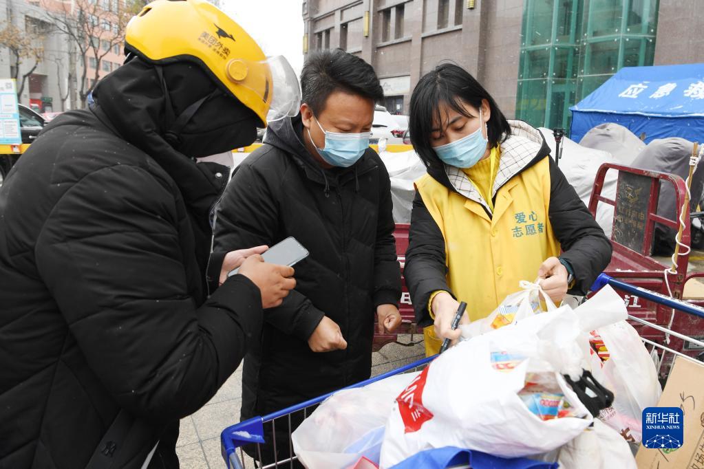当日,受强冷空气影响,甘肃省兰州市出现寒潮,伴有大风、降雪天气过程,气温大幅下降。当地战“疫”一线的工作人员在做好个人防护的前提下,坚守一线抗击疫情、传递温暖,为打赢疫情防控阻击战贡献力量。