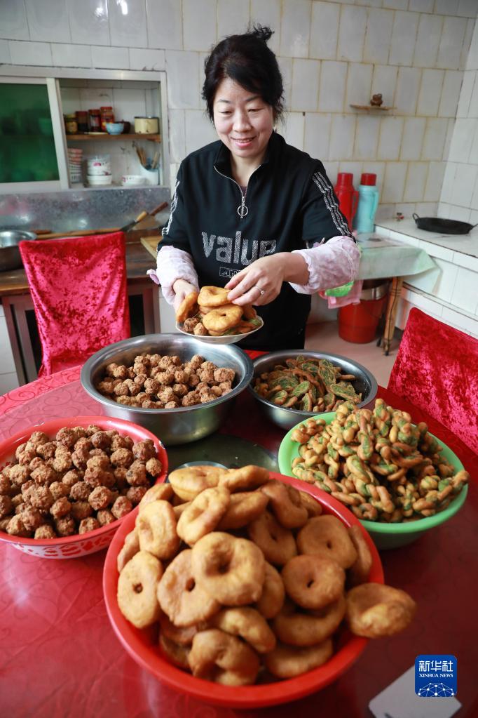 在兰州市七里河区西果园镇袁家湾村,村民张军兰在家中炸油饼、炸丸子(1月26日摄)。 新华社记者 张睿 摄