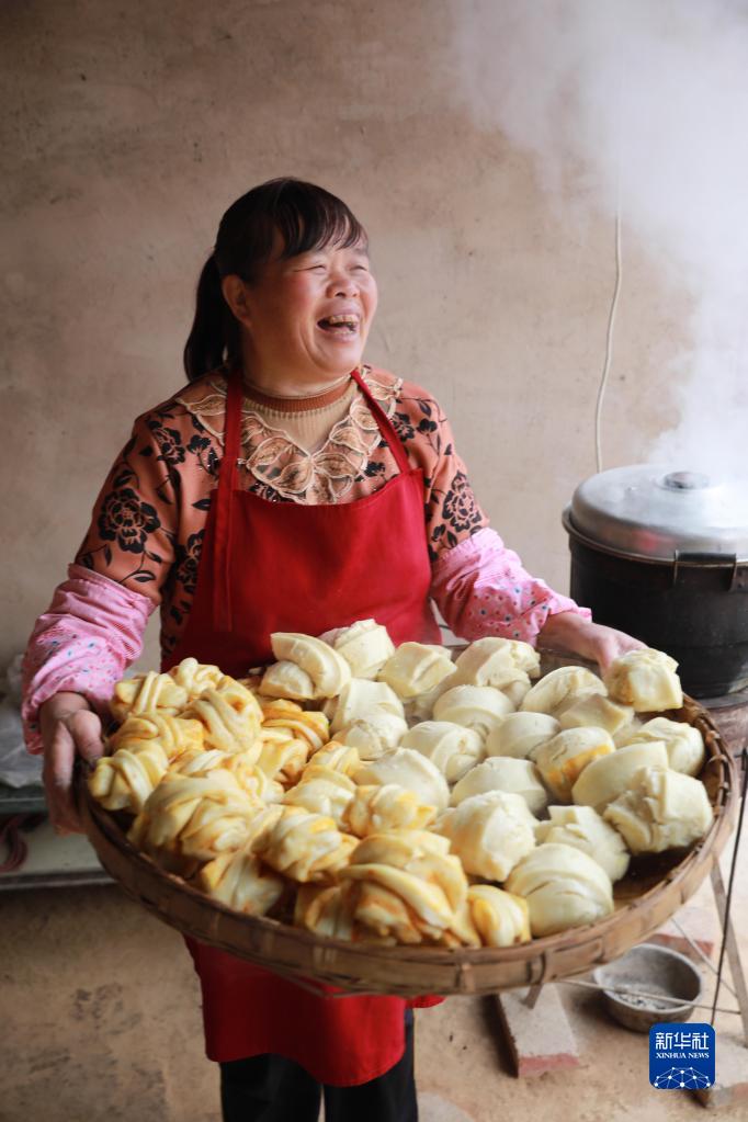 在兰州市七里河区西果园镇袁家湾村,村民柴玉红在家中捧着刚蒸好的馍馍(1月26日摄)。 新华社记者 杜哲宇 摄