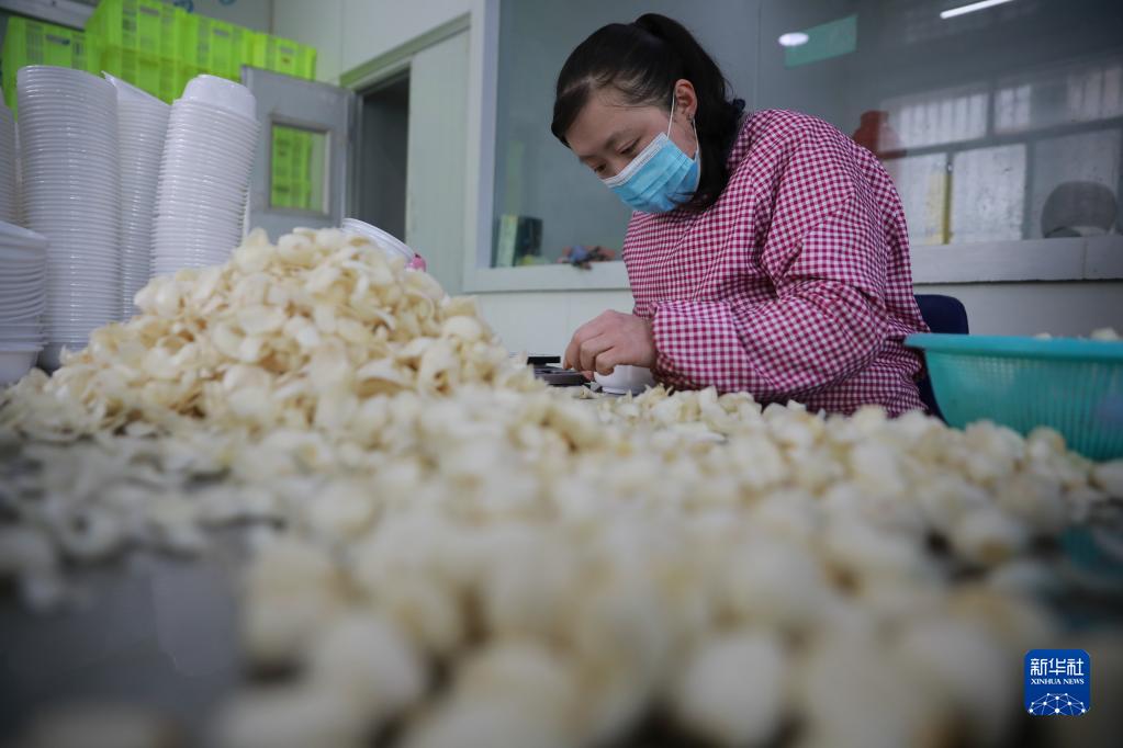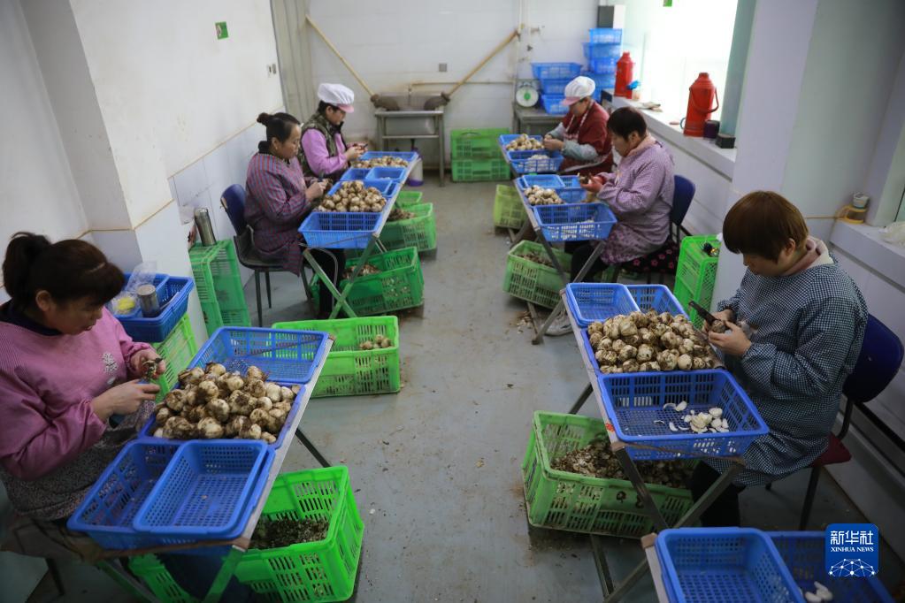 在兰州市七里河区西果园镇袁家湾村百合加工车间,村民在分拣百合(1月26日摄)。 新华社记者 杜哲宇 摄