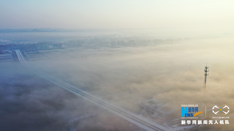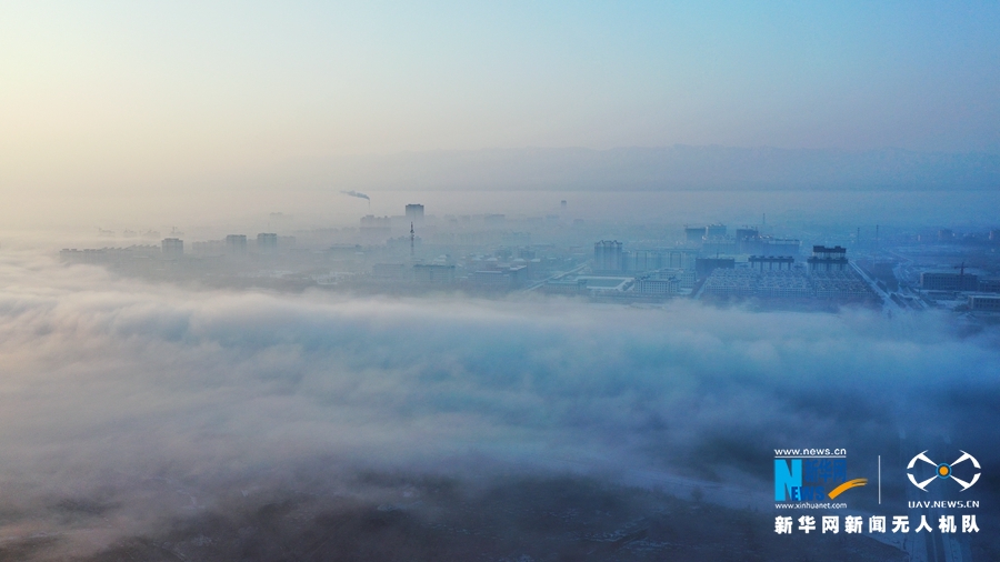 这是2月8日在甘肃省张掖市高台县航拍的云雾景观。新华网发 (蔺鹏 摄)