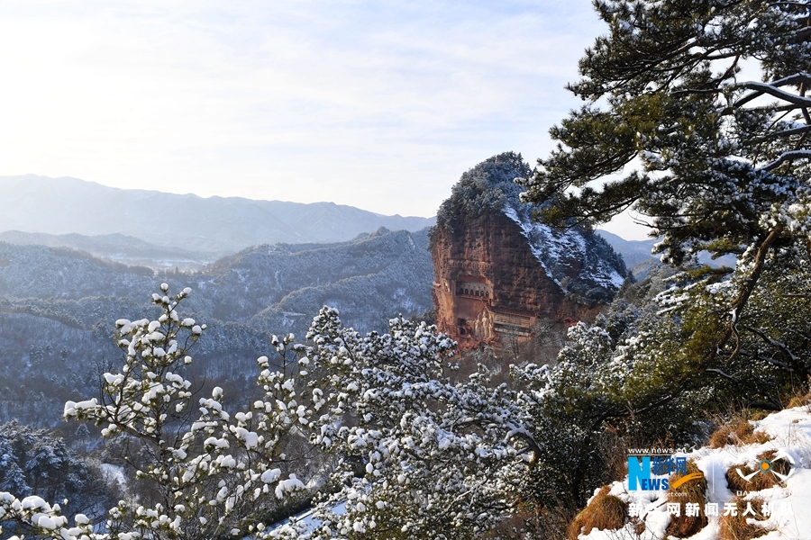 这是近日在甘肃省天水市拍摄的麦积山雪景。新华网发 (周文涛 摄)