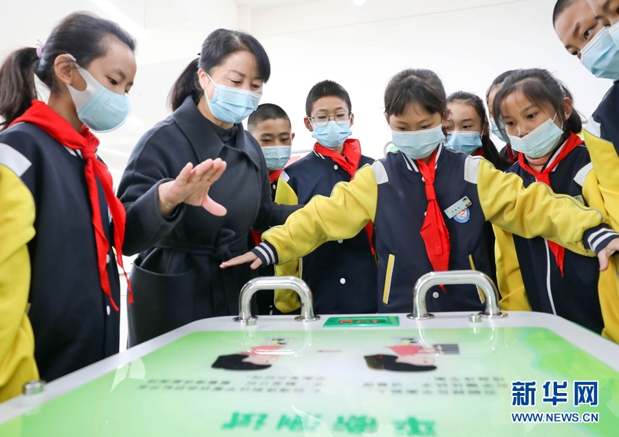 3月23日,甘肃省张掖市甘州区思源实验学校的同学们在观察方向与气流变化。新华网发 (王将 摄)