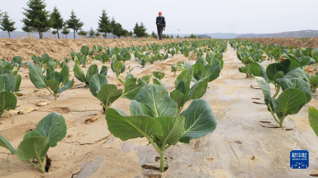 5月21日,甘肃省定西市安定区内官营镇农民对蔬菜进行管理。新华社发(王克贤 摄)
