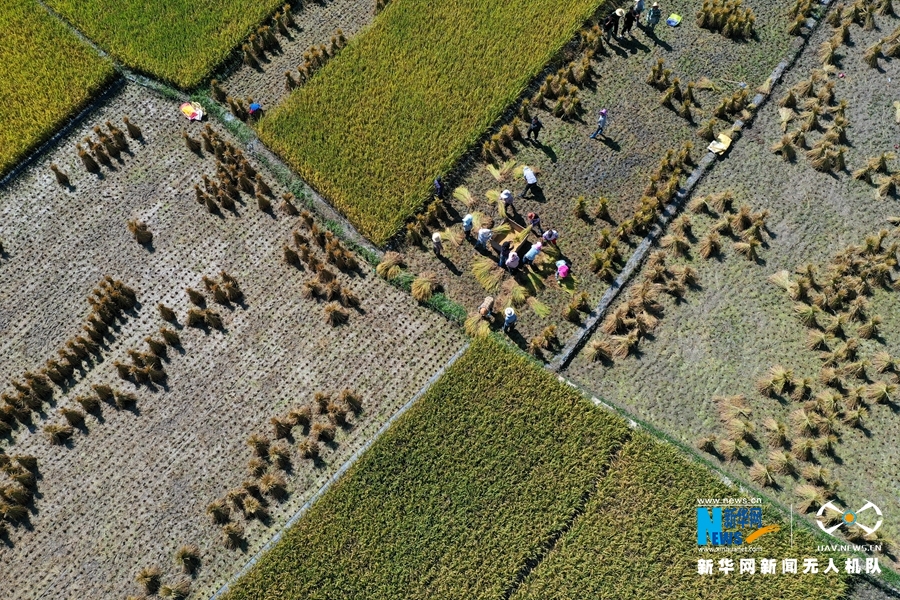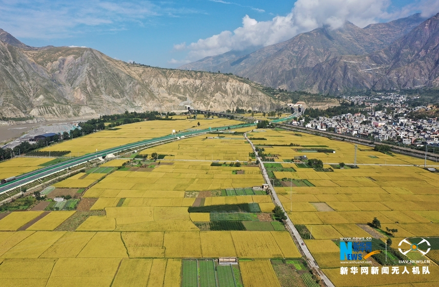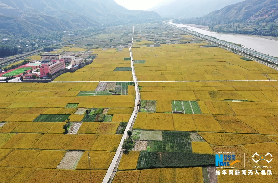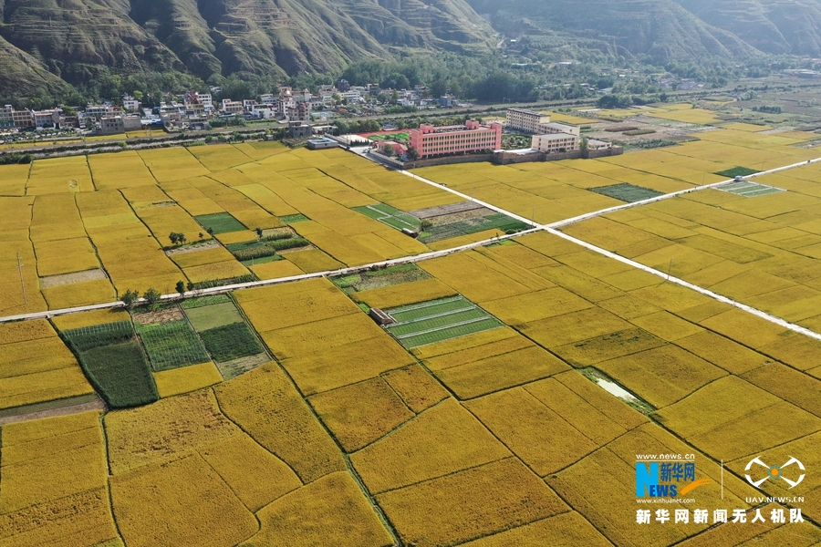 【“飞阅”中国】甘肃陇南:金色稻田“绘”丰收画卷