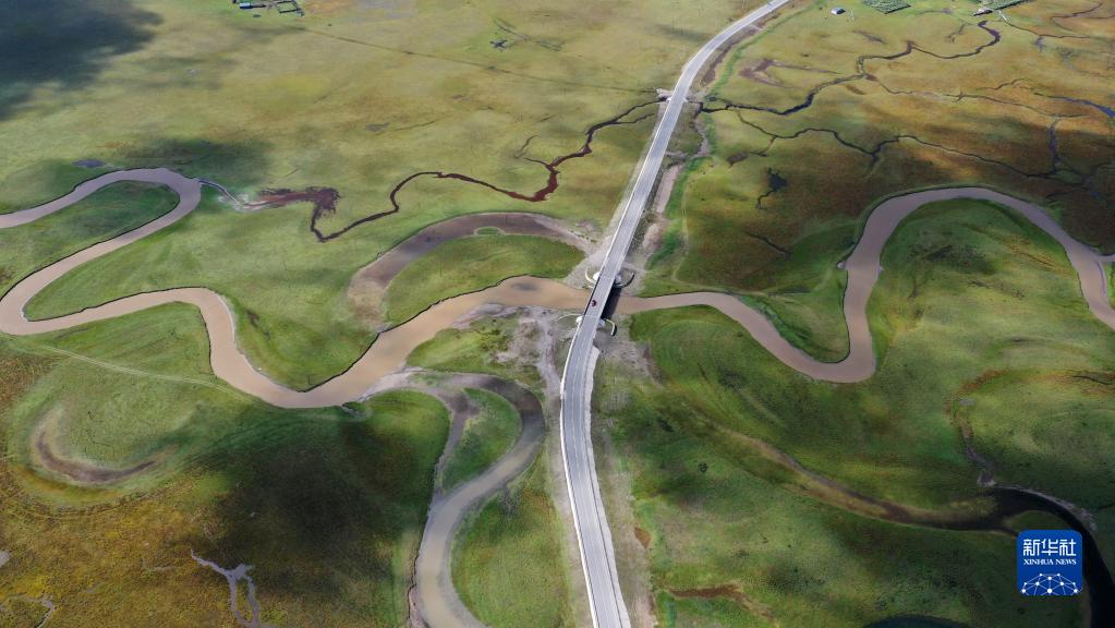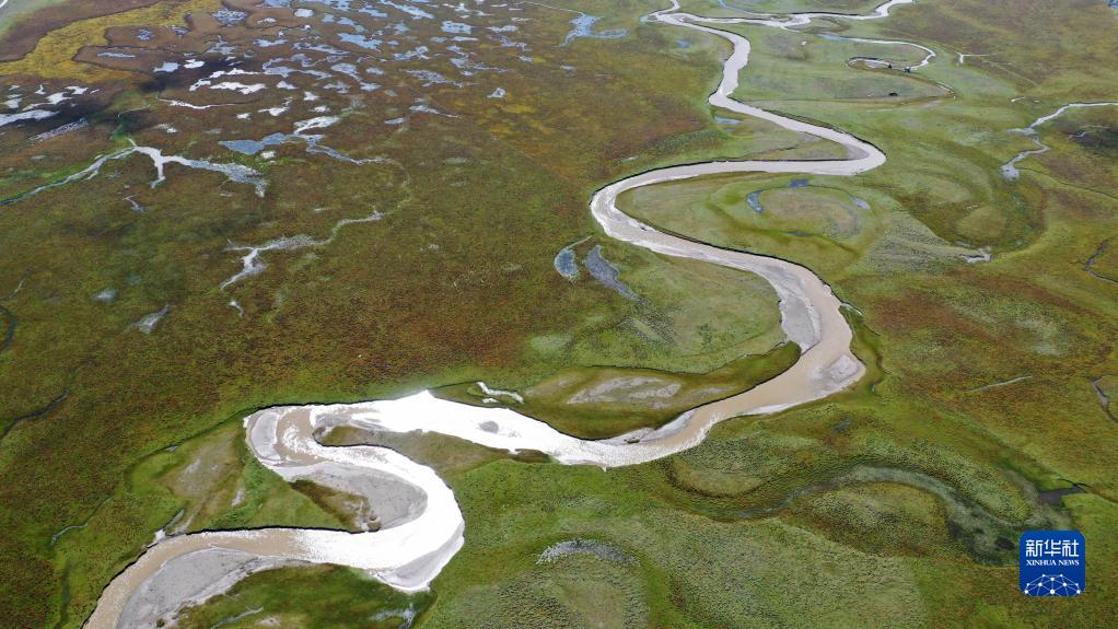这是2022年9月21日拍摄的玛曲县阿万仓湿地(无人机照片)。新华社记者 陈斌 摄