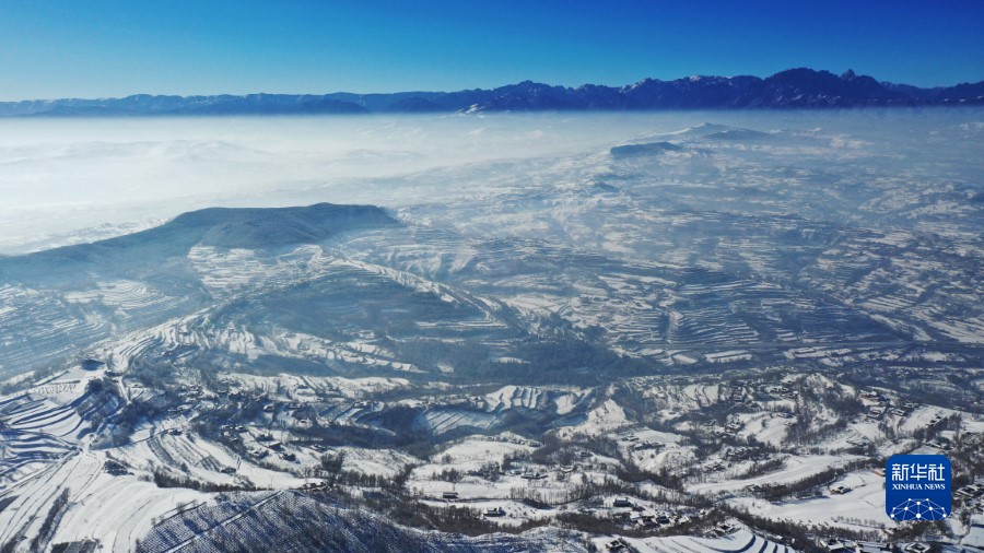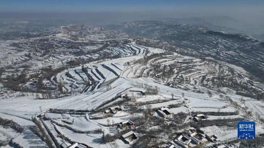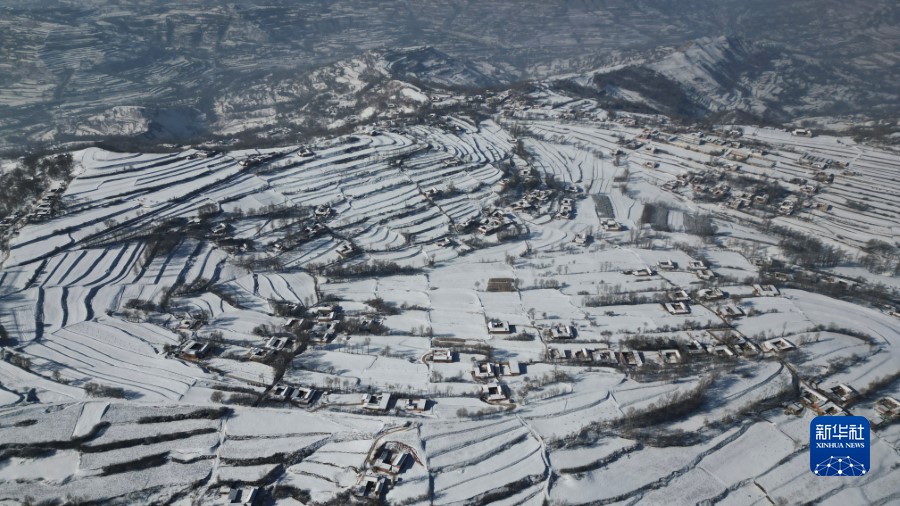 这是12月17日在临夏回族自治州和政县拍摄的雪景(无人机照片)。新华社发(史有东 摄)