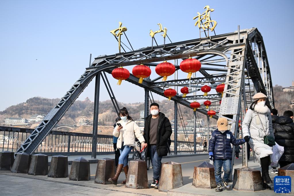 1月1日,人们在甘肃兰州城关区中山桥游览。新华社记者 范培珅 摄