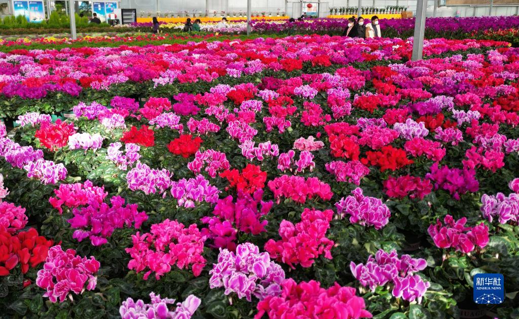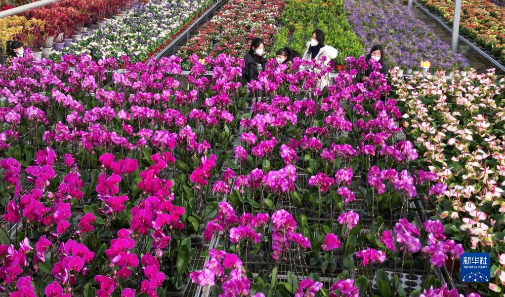 春节临近,甘肃省临夏回族自治州鲜花市场迎来销售旺季,人们选购年宵花卉,迎接新春佳节的到来。