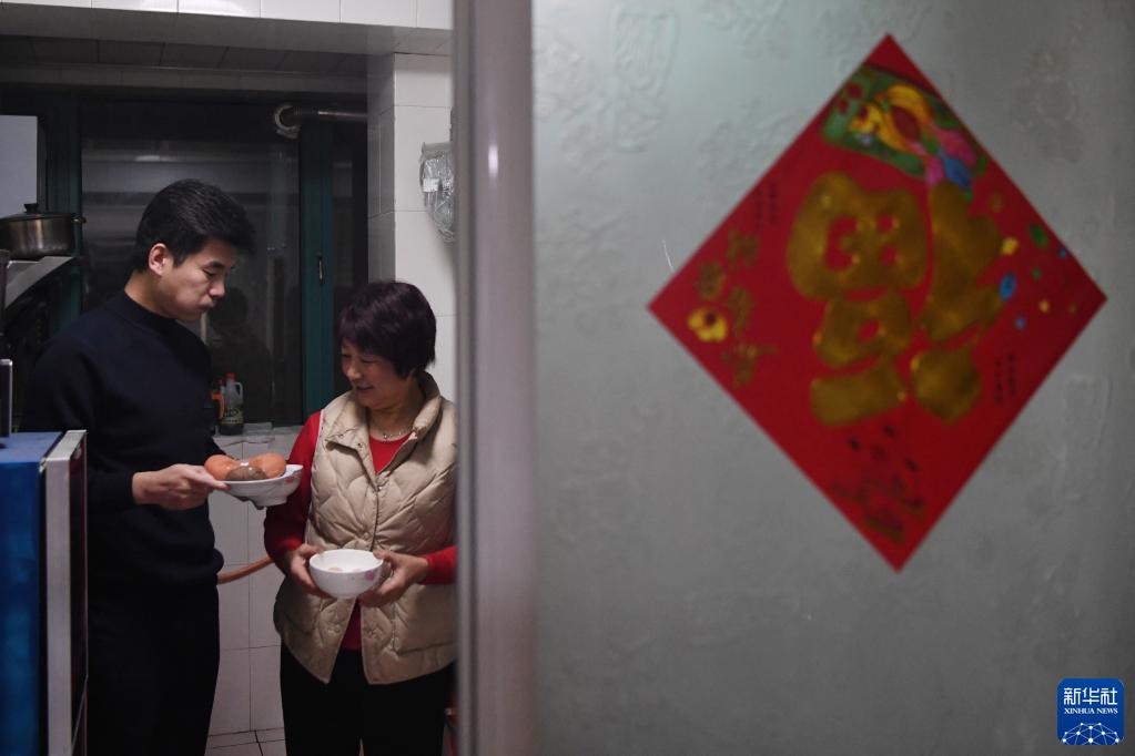 1月9日清晨,白旭伟(左)在家中和母亲一起准备早饭。新华社记者 陈斌 摄