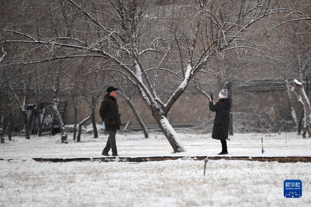 2月8日,市民在兰州马拉松文化主题公园内拍照赏雪。新华社记者 陈斌 摄