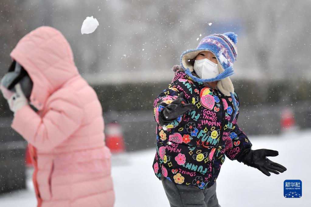 2月8日,两名小朋友在雪地里玩耍。新华社记者 陈斌 摄