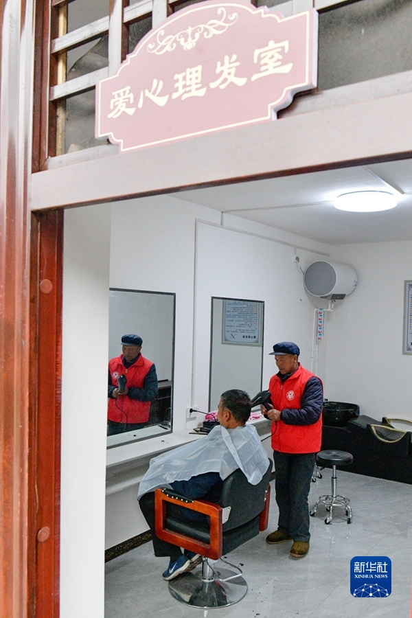 在陇南市宕昌县官亭镇王家村“幸福家园”,村民在理发室理发(2月8日摄)。新华社记者 范培珅 摄