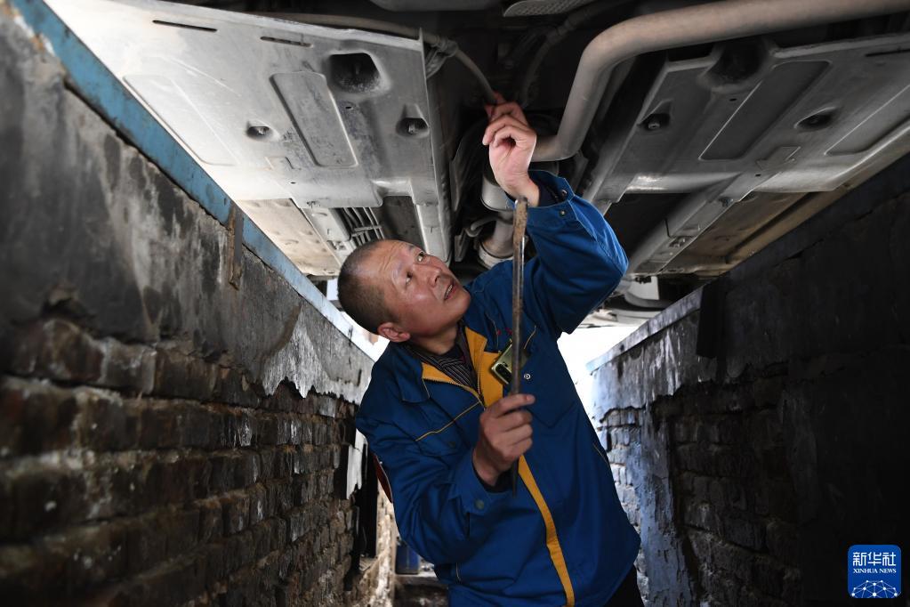 强汉红在检查车辆(3月1日摄)。新华社记者 陈斌 摄
