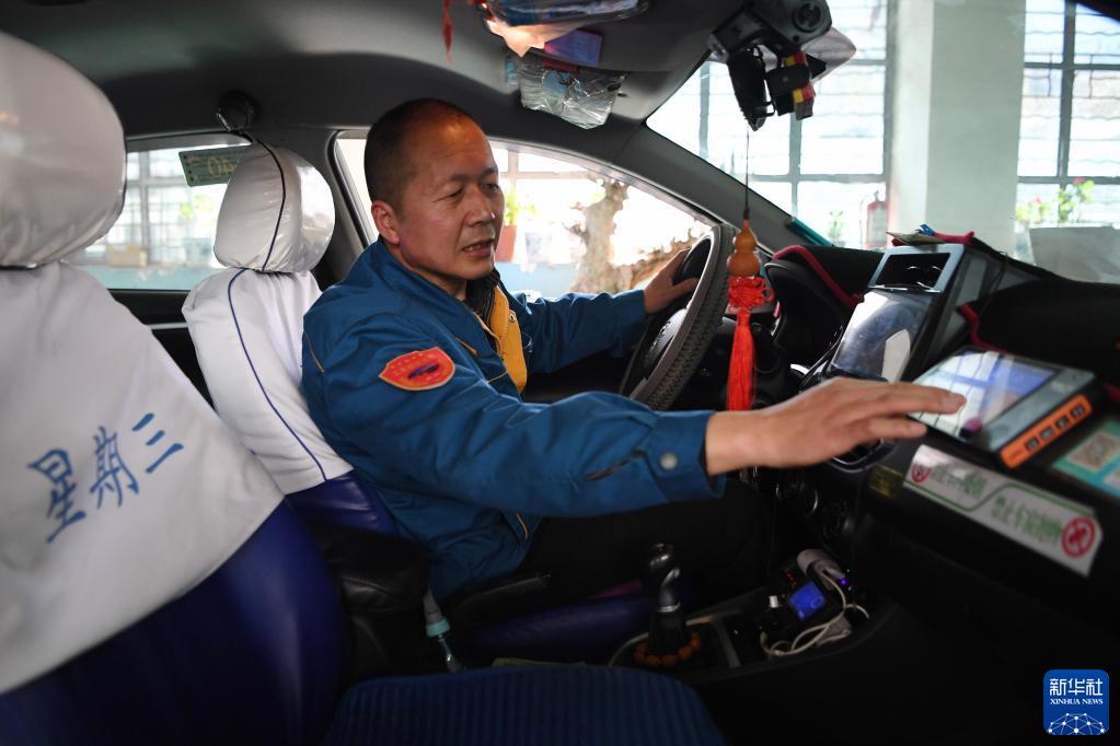 强汉红在出车前检查车内设备(3月1日摄)。新华社记者 陈斌 摄