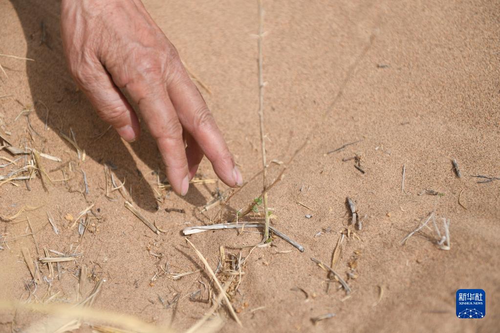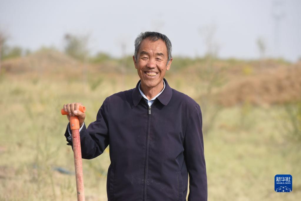5月6日,八步沙第二代治沙人郭万刚在古浪县的一片治沙区查看树苗生长情况。新华社记者 林立平 摄