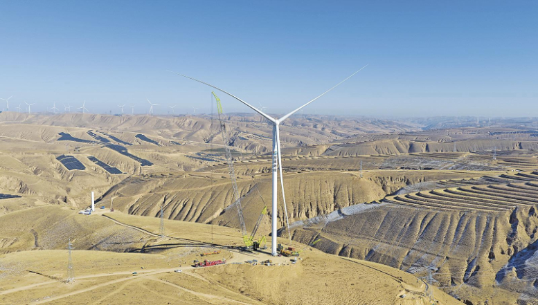 庆阳东数西算产业园区绿电聚合试点项目首台风电机吊装完成