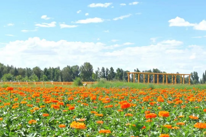 产业是乡村振兴的“源头活水”,产业兴则农村兴、产业旺则农村旺。近年来,瓜州县三道沟镇充分发挥资源优势,采取“党组织引领、合作社牵头、企业化经营、订单化销售”的运行模式,连片种植各类花卉2000亩,配套建成田间栈道、观景廊道、农耕文化长廊、悬空景观壶等特色景观;修建美食木屋、休憩凉亭、花海风车、景观小品等休闲娱乐设施,建成“福禄迎宾”特色美食一条街,形成了集“花卉制种、休闲观光、美食品鉴、生态康养、农事体验”为一体的田园观光旅游综合体。