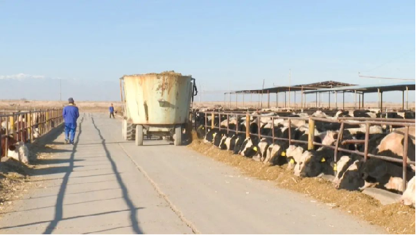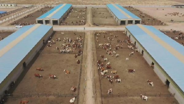 华谊苜蓿种植开发公司养殖场负责人殷学才说:“我们牛场1月份到现在出栏100多头大牛,陆续还要出,到3月份还要进小牛,维持到1000头左右。”