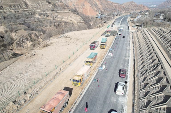 3月12日,记者在安临一级公路项目建设现场看到,压路机、摊铺机等工程机械开足马力,工人们加班加点施工,一条宽阔平坦的公路已初见雏形。