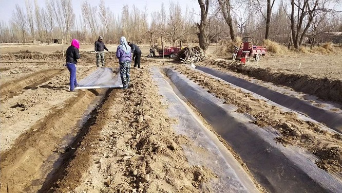 近日,走进敦煌市黄渠镇各村的田间地头,处处可见瓜农抢农时、赶进度,结伙搭对打窝栽苗、铺膜搭棚的繁忙的景象。不一会,一排排齐腰高的小拱棚就陆续架好,等待西甜瓜在这里“安家落户”。