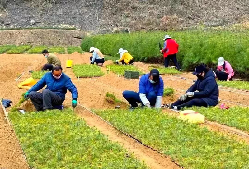 “种下摇钱树,踏上幸福路,念好生态经,振兴有‘钱’景……”,高桥镇黑松村的育苗地一派繁忙景象。