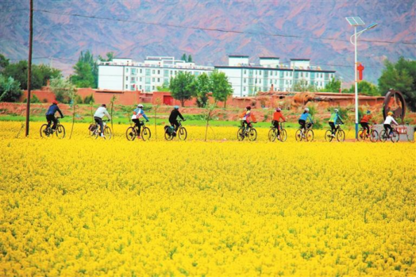 张掖市甘州区黑河弱水湾旅游休闲度假景区的千亩油菜花竞相盛开,一片金黄色的花海美不胜收,吸引众多游客前来观赏。 新甘肃·甘肃日报通讯员 宋进林
