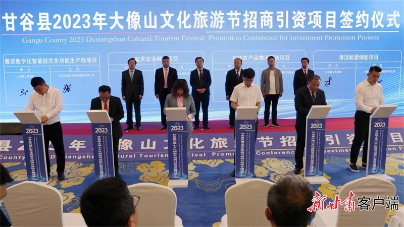 此外,甘谷县还以“节会”为媒,不断开放招商,全国知名企业和商协会代表欢聚一堂、畅叙友谊、携手合作、共谋发展。本次旅游节期间,共成功签约32个项目,总投资112.78亿元,涵盖新型供暖微波加热设备生产线、分布式光伏发电、清洁能源储能、甘味农产品物流配送、航天农业种植等。