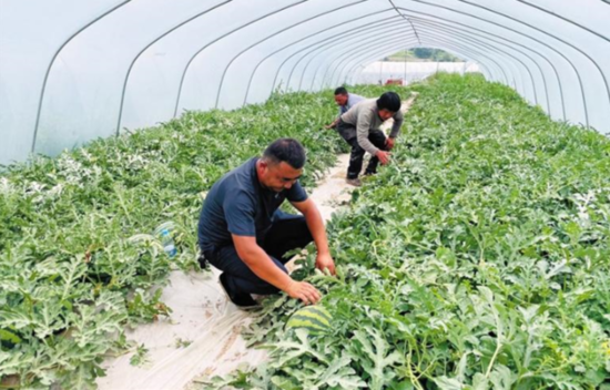 记者在采访中了解到,近年来,北塬镇以强镇富民为抓手,抢抓东西部协作政策机遇,与浙江西瓜种植大户建立技术合作关系和产品产销协议,建成千亩西瓜种植示范基地。目前,在上石、松树、前石、朱潘4个村共种植西瓜3259.8亩,预计年产西瓜1.5万吨,年产值约5200万元,并吸纳当地800余人就近就业。