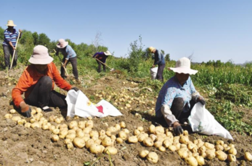 还有一些农民化身产业工人,活跃在收获现场,解决了合作社用工难题,也让他们增加了一份收入。“今年,合作社流转180亩土地,引进种植陇薯3号种子。洋芋种植过程中,吸纳周边群众就近务工,用工高峰期有30多名工人,工资每天100元。有些村民把土地流转到合作社,自己再到合作社务工,这样就有两份收入。”大杨家村昌泰合作社负责人赵斌告诉记者。