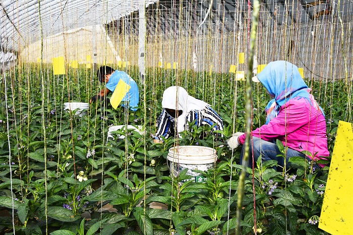 在腰站子东乡族镇辉铜村五组种植户胡显英的温室大棚中,一株株嫩绿的人参果苗枝叶舒展,郁郁葱葱。胡显英正在仔细检查人参果苗的生长情况。