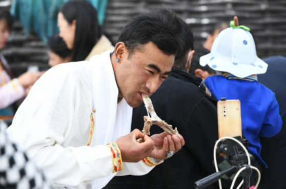 活动现场,酥油、白牦牛酸奶、白牦牛肉、手抓羊肉、莴笋等农特产品琳琅满目。群众围聚在展台前,一边品尝丰收的果实,一边交流种植养殖的经验。(记者 王冰雅 宋喜群 通讯员 李兵岐)