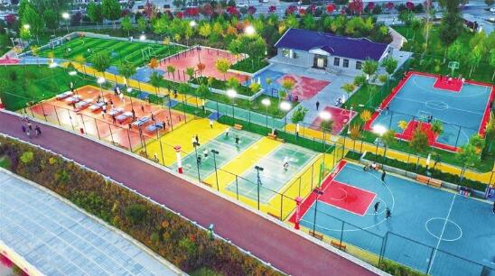 深秋时节,康乐县胭脂湖景区色彩斑斓,风景如画。傍晚时分,公园步道上,群众在散步、聊天;运动场上,乒乓球、篮球比赛如火如荼;小吃摊上,各种特色美食让人流连忘返。