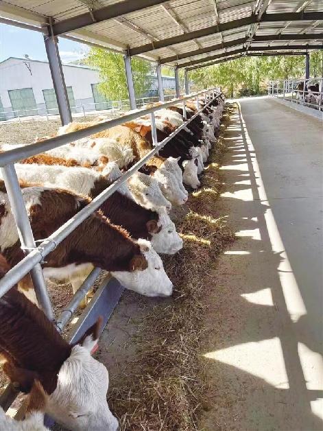 近日,记者走进该养殖园区,只见一座座宽敞整齐的高标准养殖圈舍连片排列,“哞哞”声此起彼伏,好不热闹。棚内,一头头膘肥体壮的西门塔尔牛或嚼食草料、或闭目养神,饲养员在一旁配料、拌料。