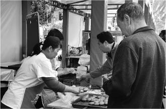 巩永春是灵台脆皮油糕摊位的经营者,在他的摊位前,总是排满了等候的食客。