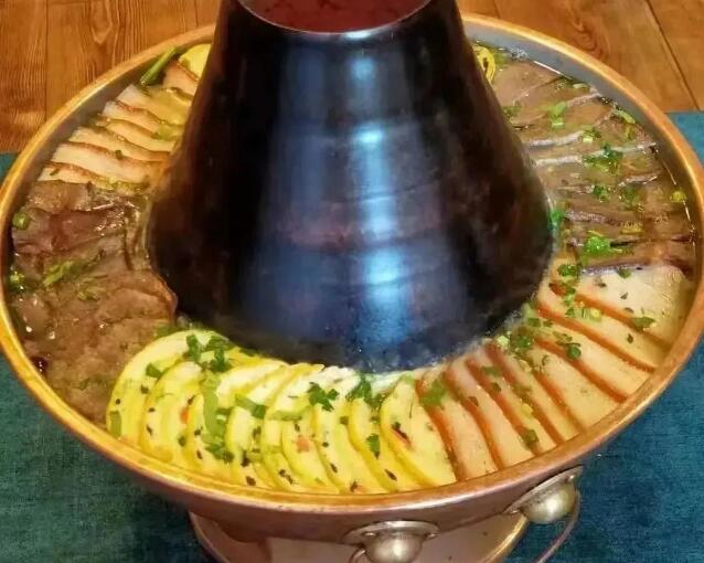 永昌炕锅子,主料是猪羊的各种内脏,洗净小煮,切成片,热锅热油,下锅炕之,配有洋葱、青椒、洋芋、蒜苗及花椒等各种佐料,将铁制的平底锅搁到熊熊燃烧的炉火上,伴随着“滋滋啦啦”的烤制声,香气四溢的地道美食便就此诞生。