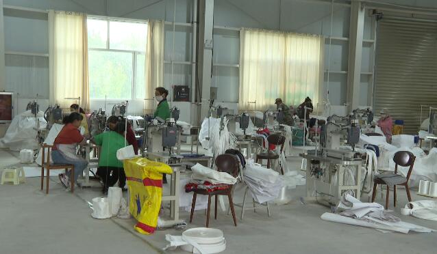 “今天下了雨不能去地里干活了,就来这边做工。”天生炕村村民方慧英一手转动缝纫机轮,一手移动着布料,动作麻利干练,“这活不累,离家又近,不去地里干活的时候,来这也能挣钱,对我们农村妇女来说确实不错。”