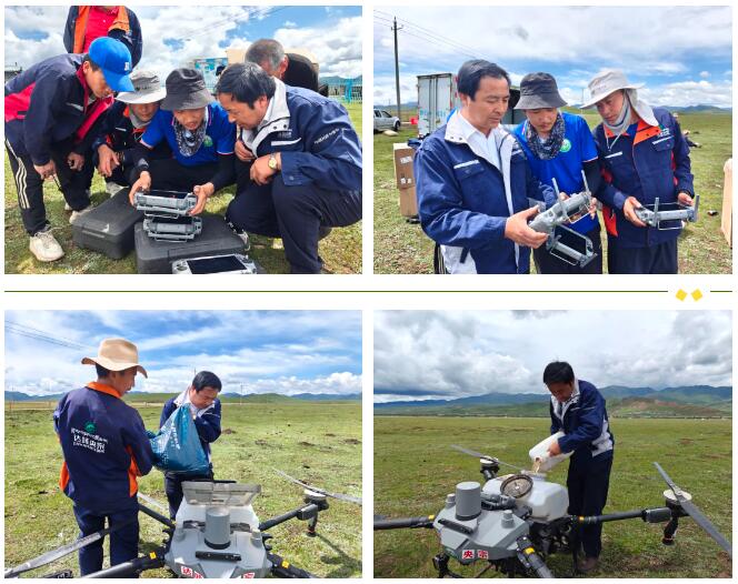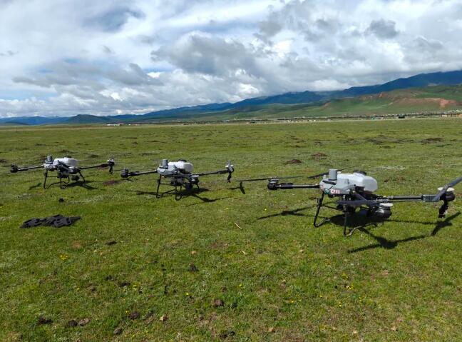 夏日风华,阳光普照。6月18日,在夏河县桑科乡日芒行政村旦正杰家庭牧场上,三架满载有机水溶肥的无人机按照预定路线巡回作业,伴随着轰隆的响声腾空而起,化肥被精准均匀地喷洒在草场之中。这是达哇央宗现代农业集团在桑科镇设立的有机肥水溶肥试验示范基地进行有机水溶肥无人机草原施肥的实验示范。
