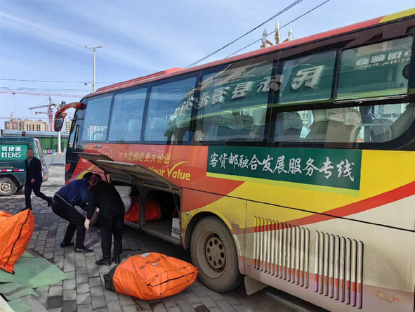 连日来,一件件装满快递物品的邮袋“坐”着民乐县城至南古镇、民乐县城至六坝镇的客运班车从县级仓储物流分拣配送中心出发,把大大小小的邮件运送到了镇村的客货邮综合服务站。