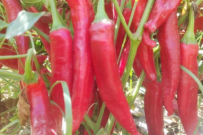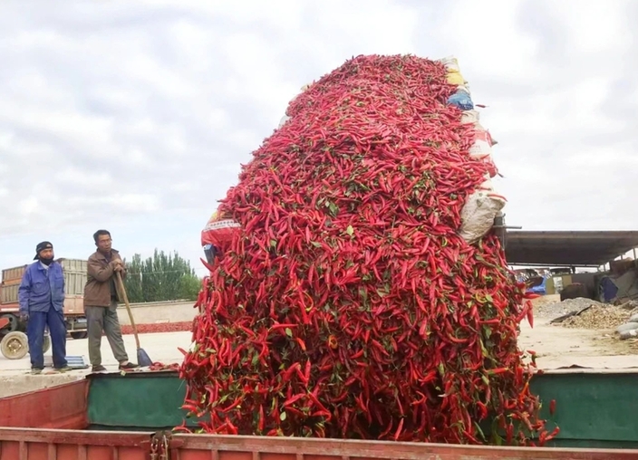 走进谭家堡村色素辣椒种植基地,阵阵辣椒独有的清香扑鼻而来。放眼望去,红彤彤的辣椒挂满枝头,处处都呈现出一片红色的“海洋”。许多村民在火红的辣椒田里忙碌,他们有的提着桶采摘辣椒、有的装车运输。“我们村气候干燥,光照时间长,种出来的色素辣椒品质好、产量高、效益优,色素辣椒产业真正带动了村民增收致富。”谭家堡村党总支书记、村委会主任马生祥说道。