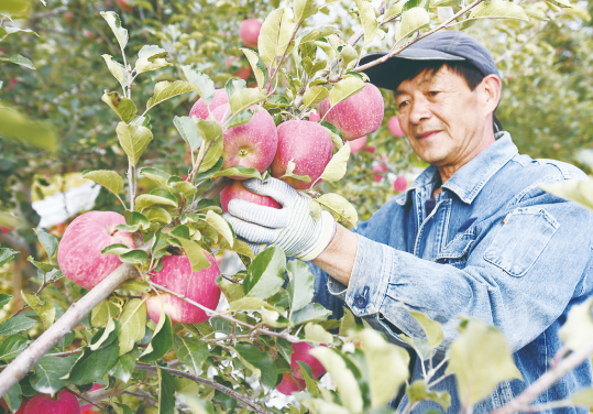 永靖县岘塬镇刘家村苹果种植基地里,红彤彤的苹果挂满枝头
