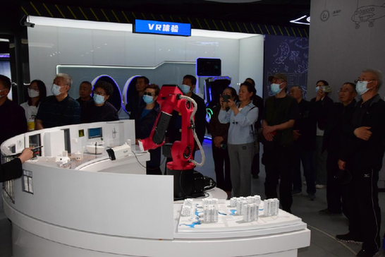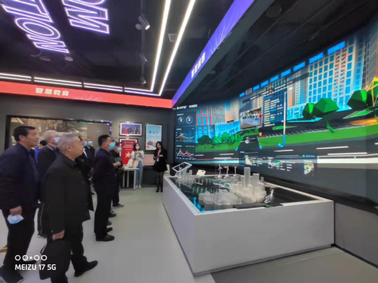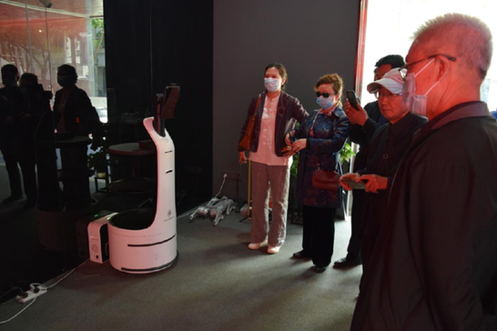 机器人“小五”首先带领大家来到“智慧城市”专区,通过多媒体智慧城市沙盘体验、LED虚拟屏讲解方式,让老人们体验到未来城市、未来社会的便利化水平。