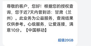 为有效支撑疫情防控流调工作,甘肃移动持续优化畅通“漫游地快速查询”通道,方便用户查询疫情信息,为用户提供信息参考。截至目前,行程码查询已接近4千万人次。