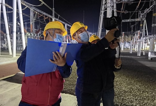 国网平凉供电公司变电运维人员在330千伏眉岘变开展夜间测温测负荷 杨建伟摄