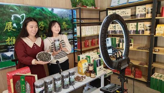 竹院乡大草坡村干部通过移动5G带货直播销售农产品
