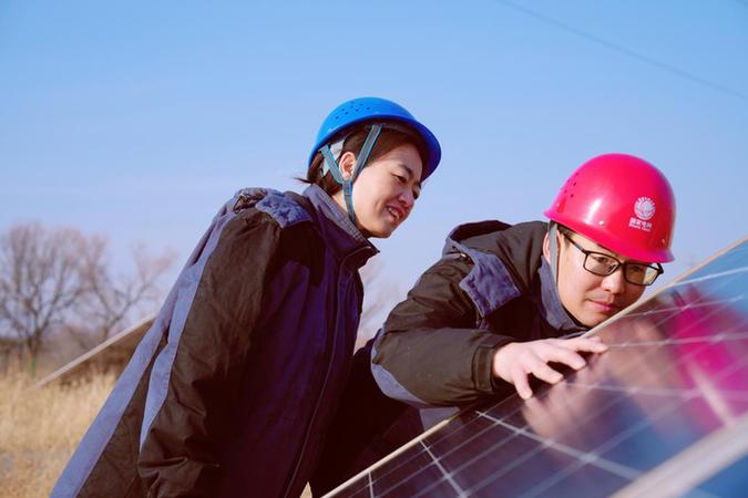 国网兰州供电公司员工检查分布式光伏电站光伏组件运行情况。史双绚摄