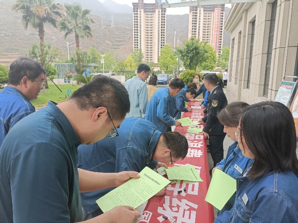 4月29日上午,国网陇南供电公司组织开展“餐桌文明,从我做起;反食品浪费,倡导绿色生活——职工签字承诺”宣传活动,活动在该公司职工食堂开展。